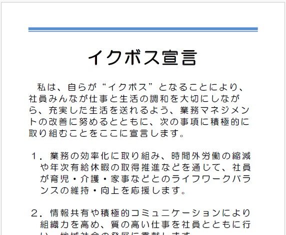 代表が「イクボス宣言」いたしました。令和6年6月3日に、弊社代表取締役 横峯秀浩が『イクボス宣言』をいたしました。 ※「イクボス」とは、職場で働く部下やスタッフのワーク・ライフ・バランス(仕事と家庭の調 和)を考え、その人のキャリアと人生を応援しなが […]